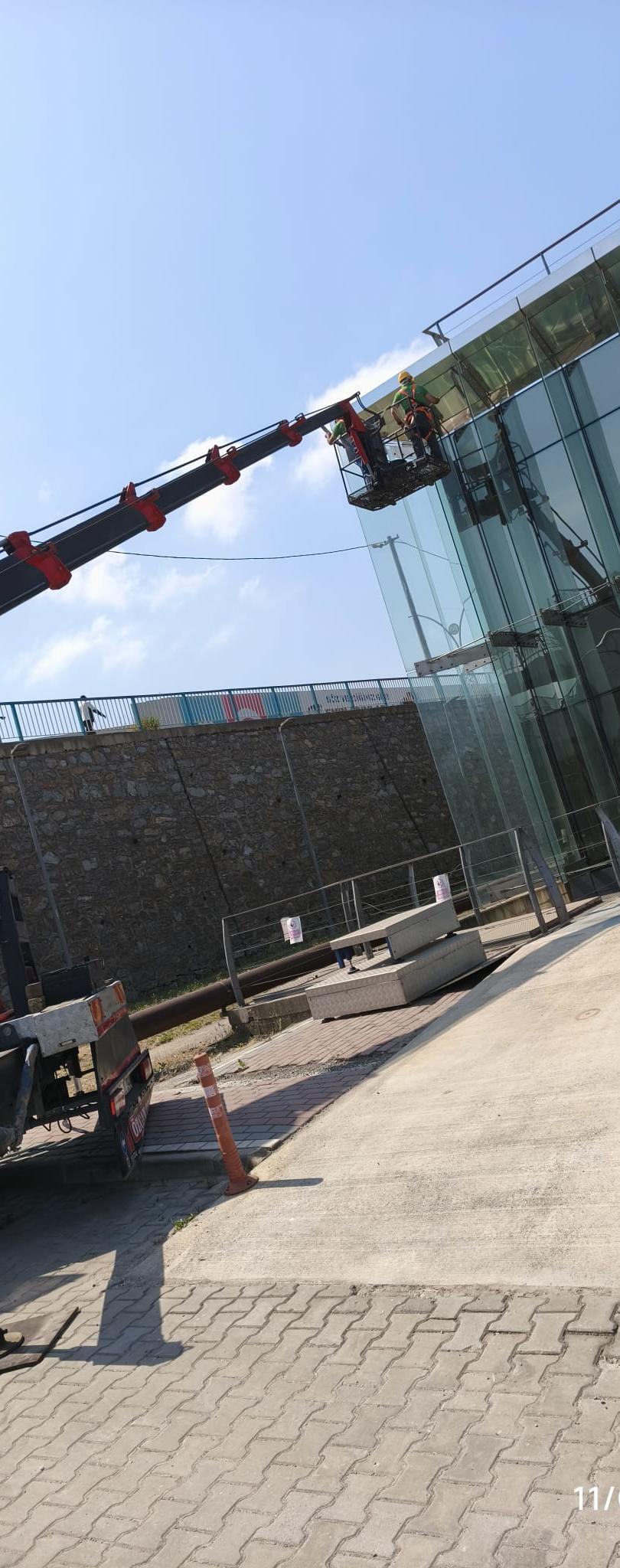 Tüm personel, yüksekte çalışma sertifikalı ve sigortalıdır. Çalışma alanları güvenlik şeridiyle çevrilir, ekipmanlar günlük kontrol edilir.